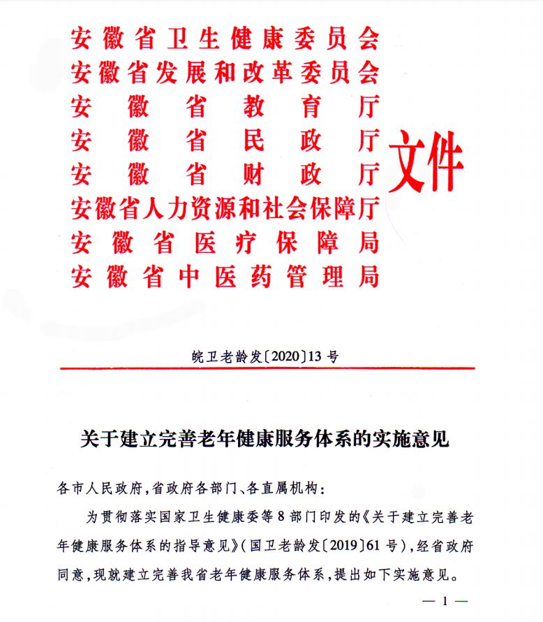 关于建立完善老年健康服务体系的实施意见
